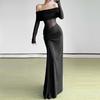 Compra Moderna Diseñadora Europea y Americana 2025 Otoño e Invierno Nuevo Vestido de Mujer de un Hombro con Empalme de Malla Transparente de Manga Larga al por mayor en Joom.pro
