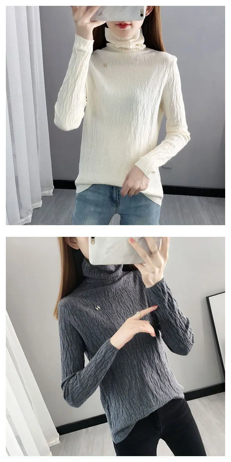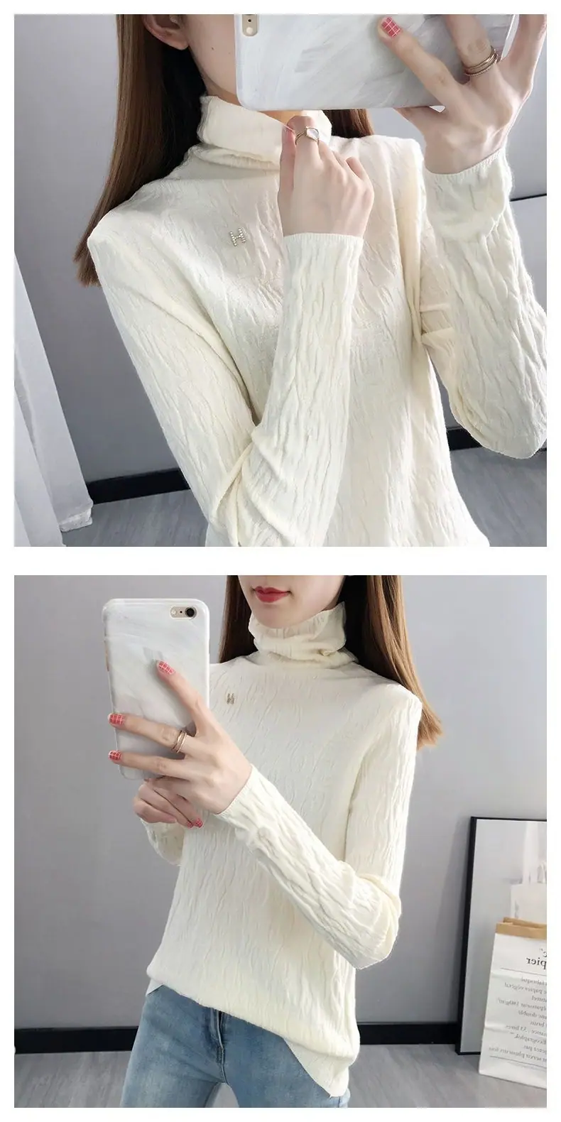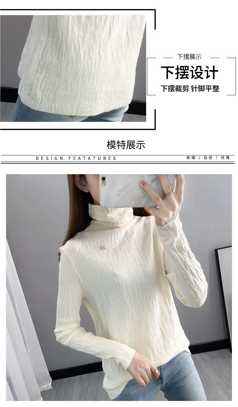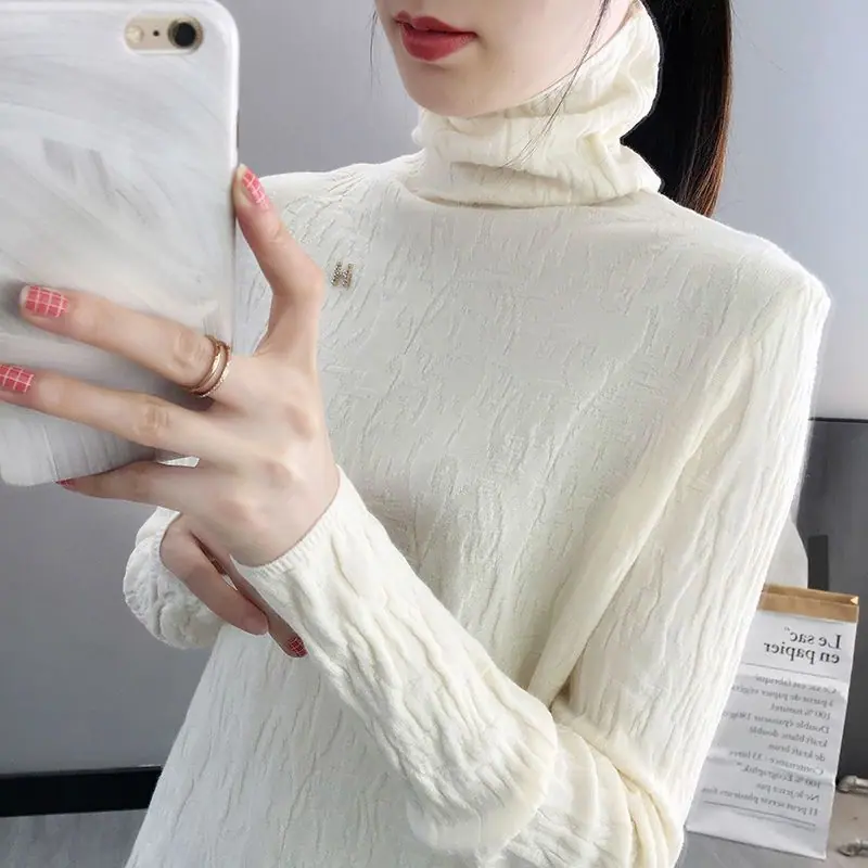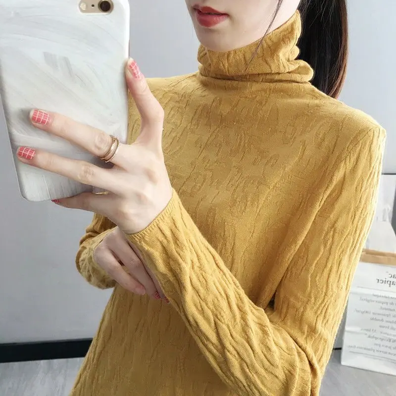 Suéter de cuello alto Camiseta base Ropa interior para mujer Primavera Año Nuevo Nuevo estilo Versátil Adelgazante Moda Camisa de punto