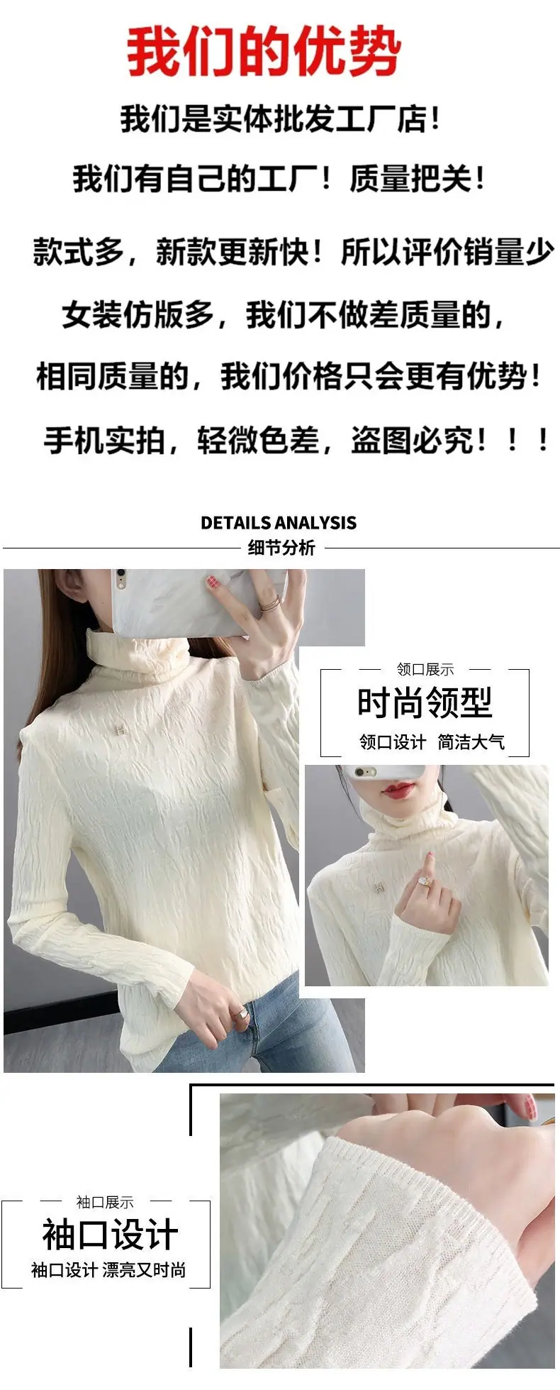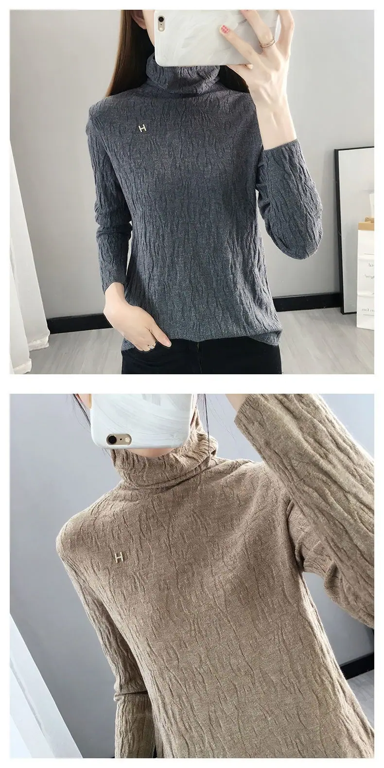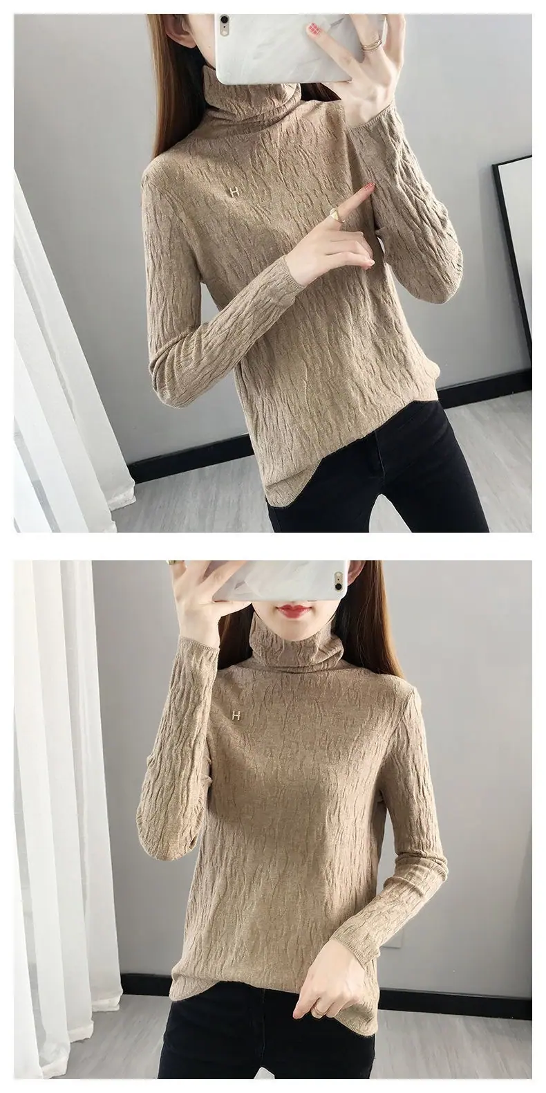 Suéter de cuello alto Camiseta base Ropa interior para mujer Primavera Año Nuevo Nuevo estilo Versátil Adelgazante Moda Camisa de punto