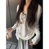 Playera blanca de estilo holgazán con cuello en V, corte holgado, manga larga para mujer, casual, versátil, otoño e invierno, ropa interior, top básico simple