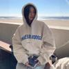Sudadera con capucha con letras estilo coreano para mujer, casual, estilo Hong Kong, top nuevo para otoño e invierno 2025, chaqueta delgada holgada, tendencia INS