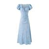 2025 Nuevo Estilo de Verano Estilo Francés Cuello U con Cordones Vestido Midi de Manga Corta Cintura Ajustada Falda Larga