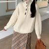 Otoño e Invierno Nuevo Suelto Estilo Coreano Estilo Perezoso Cuello Alto Tejido de Trenzas Prendas de Punto para Mujer Top Casual de Gama Alta Suéter de Punto