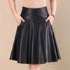 Shanlida Di 2025 Otoño e Invierno Nueva Falda de Cuero PU Falda Plisada Falda de Cintura Alta Falda Corta para Mujer Delgado de Longitud Media a