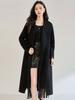 25 Invierno Borla Larga Lana Exterior de Lana de Doble Cara Largo Medio Slim Exterior de Lana 25610 Negro