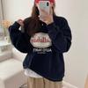 Compra Sudadera Azul Marino con Cuello Redondo para Mujer en Otoño e Invierno Marca Trendy Retro Americana Estilo Perezoso Holgada con Capucha de Manga Larga Top de Terciopelo al por mayor en Joom.pro