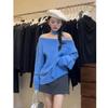 2025 Otoño e Invierno Nuevo Transfronterizo Tejido de Alta Calidad Europeo y Americano Set de Dos Piezas para Mujer con Cuello de Hombro Descubierto y Cuello de Línea Única Tejido Coreano