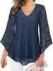 Top de Color Sólido para Mujer con Forro de Encaje y Cuello en V, Holgado y Versátil con Diseño de Manga de Campana, Top de Principios de Primavera