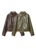 2025 Nueva Ropa de Otoño para Mujer Estilo Europeo y Americano Moda Redonda Otoño Nuevo Chaqueta de Cuero con Cordón Chaqueta