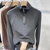 Nueva Camiseta de Manga Larga Otoño e Invierno 2025 Terciopelo de Doble Cara Casual Mangas Raglán Media Cremallera Cuello Alto Top Sencillo para Mujer