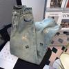 Compra Nerum Fun Jeans Bordados para Mujer Marca Trendy Americano Retro Lavado Viejo Slim Rectos al por mayor en Joom.pro