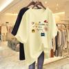 Camiseta de Manga Corta de Algodón Puro Color Albaricoque para Mujer 2026 Nuevo Verano Estilo Europeo Talla Grande Moda que Reduce la Edad Top de Dibujos Animados