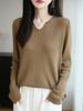 Otoño Temprano 2025 Nuevo Tejido de Lana Peinada Cuello en V Manga Larga para Mujer Color Sólido Calado Holgado Suéter Camiseta Base