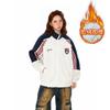 Sudadera Chaqueta Americana con Cuello Alto de Tres Barras para Mujer Otoño e Invierno 2025 Nuevo Diseño Uniforme de Béisbol para Pareja Cárdigan Superior