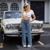 Pantalones de Pierna Ancha para Mujer de Amazon Transfronterizos Otoño Vintage Lavado Jeans Nuevos 2025 Jeans de Pierna Ancha de Cintura Alta para Mujer