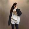 2025 Nuevo Primavera Estilo Americano Lazy Chic Cuello Redondo Costuras Sueltas Mangas Raglán Contrastantes Sudadera Gris para Mujer Otoño e Invierno