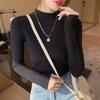 Tejido de Punto de Cuello Medio Alto para Mujer en Otoño e Invierno Nuevo Estilo Ajustado Interior de Manga Larga Versátil Camiseta Top para Fondo