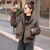 Nuevo Abrigo de Algodón con Mangas de Punto Casual 2025 para Mujer Invierno Sin Lavar Engrosado Moda Abrigo de Algodón para Mujer Abrigo Corto Color Pan