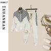 Traje Deportivo Casual Estampado en Forma de D de Cuello Alto Otoñal, Versátil Conjunto Nicho de Dos Piezas, Leggings, Ropa de Mujer Moderna y Elegante