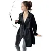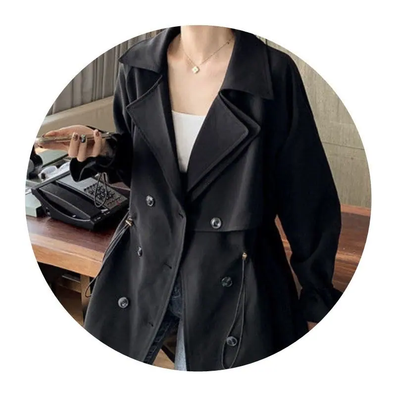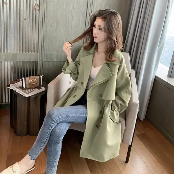 Principios de Otoño Nuevo Abrigo Trench para Mujer Largo Medio Suelto Sobretodo Estilo Coreano Versátil Cuello de Traje Casual Chaqueta Delgada