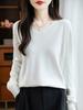 2025 Nuevo Andy Tejido de Terciopelo para Mujer Cuello en V Color Sólido Suéter Holgado Elegante Moderno Casual Manga Larga Base