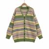 Aliexpress Transfronterizo Ropa Europea y Americana al por Mayor 2025 Principios de Primavera Nuevo Color Cárdigan Suéter Rayado en Contraste