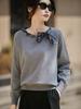 2025 Nuevo Otoño e Invierno Lana Peinada Cuello Redondo Tejido de Punto Manga Larga Diseño para Mujer Bufanda de Seda Jersey Camiseta Básica