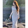 Compra Vestido de Cuello Cuadrado Francés con Tirantes y Mangas Largas Estilo Nuevo para Mujer Otoño e Invierno de Gama Alta Cintura Interior Adelgazante Versátil Falda Base al por mayor en Joom.pro