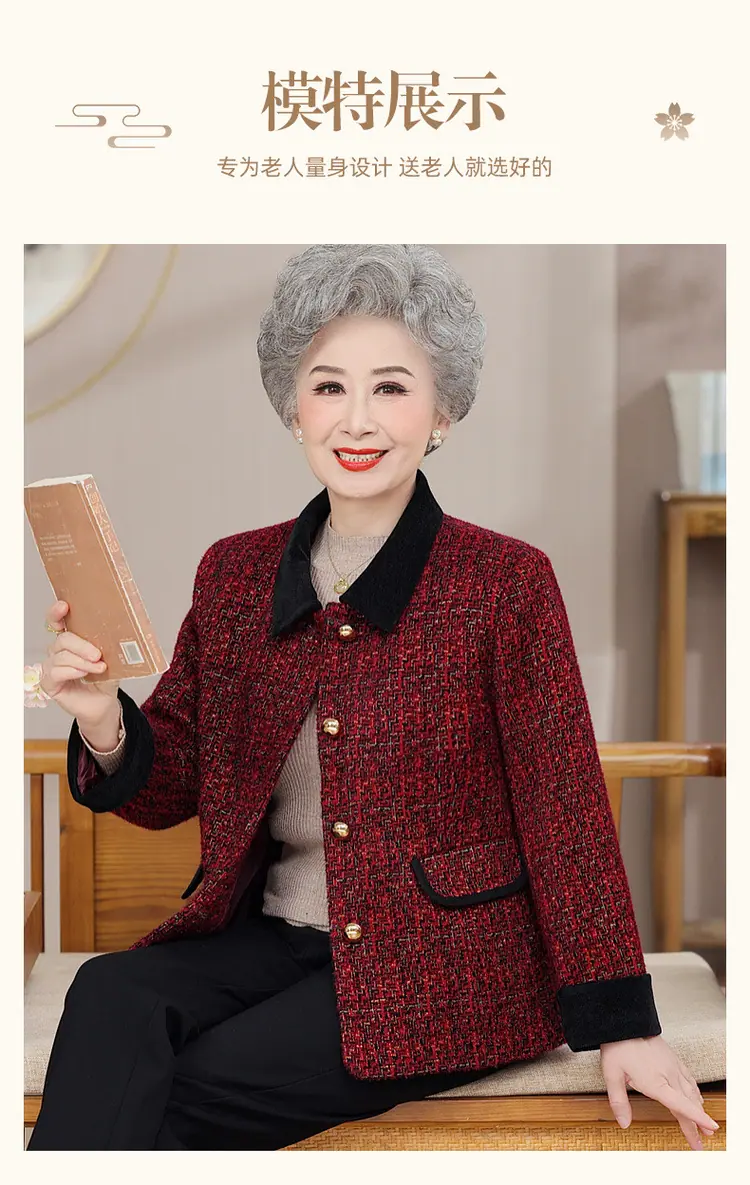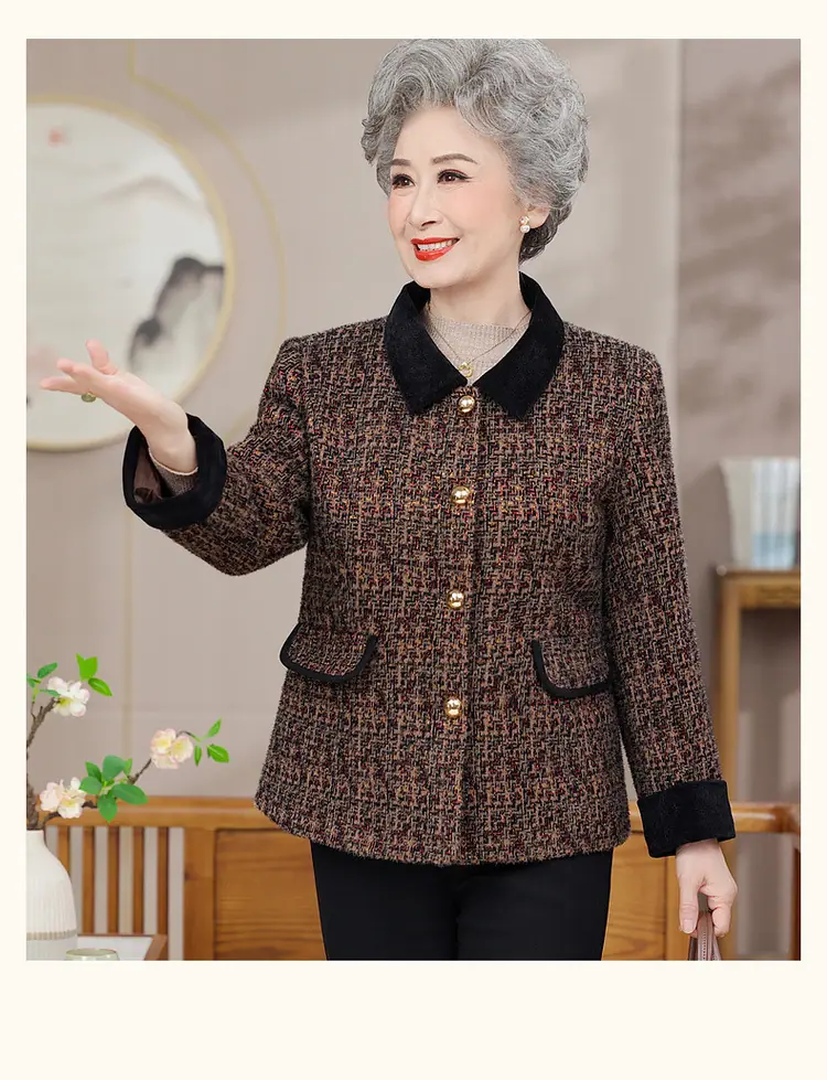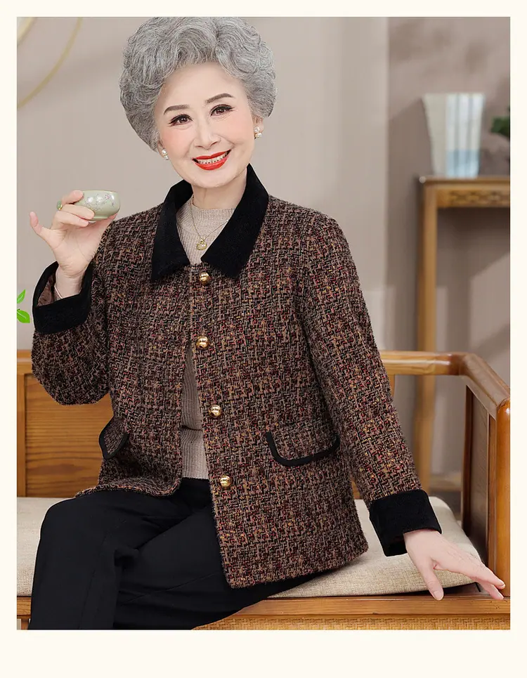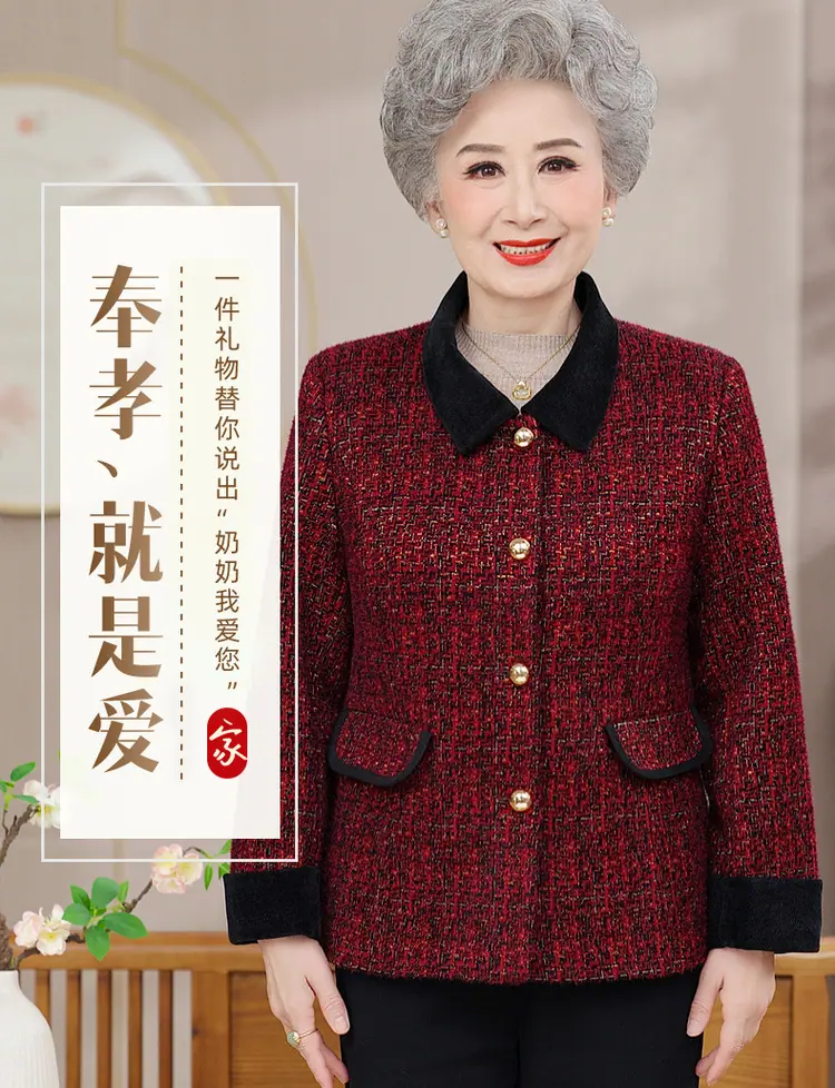 Ropa de abrigo moderna para abuela para primavera y otoño 2025 Nuevo estilo Ropa para señoras mayores Ropa para madre de mediana edad Tops de primavera y otoño