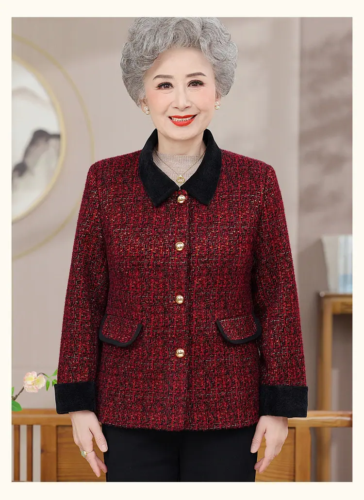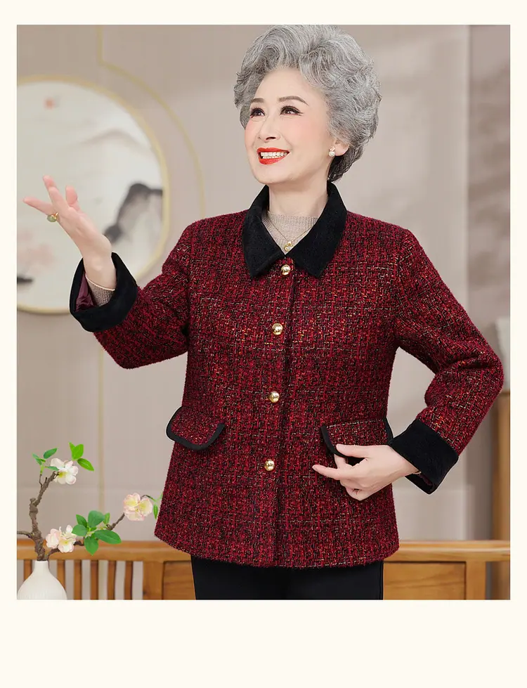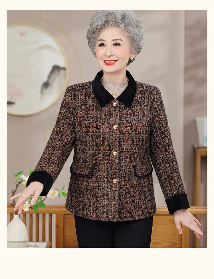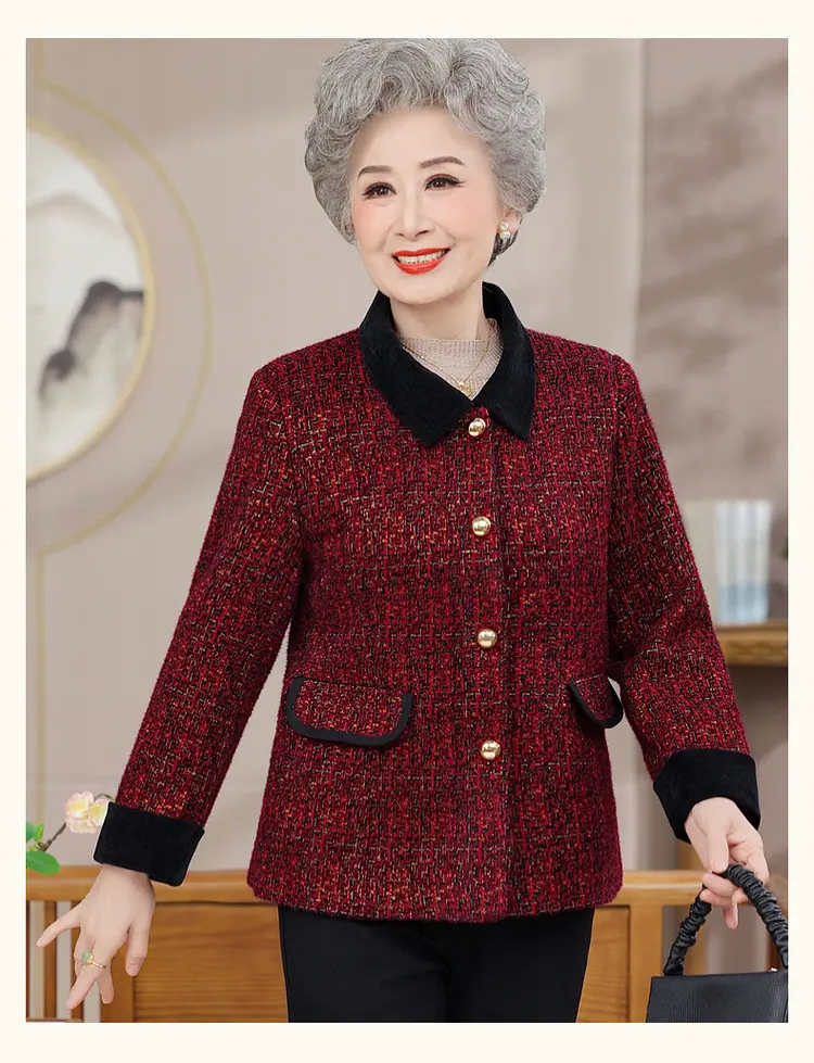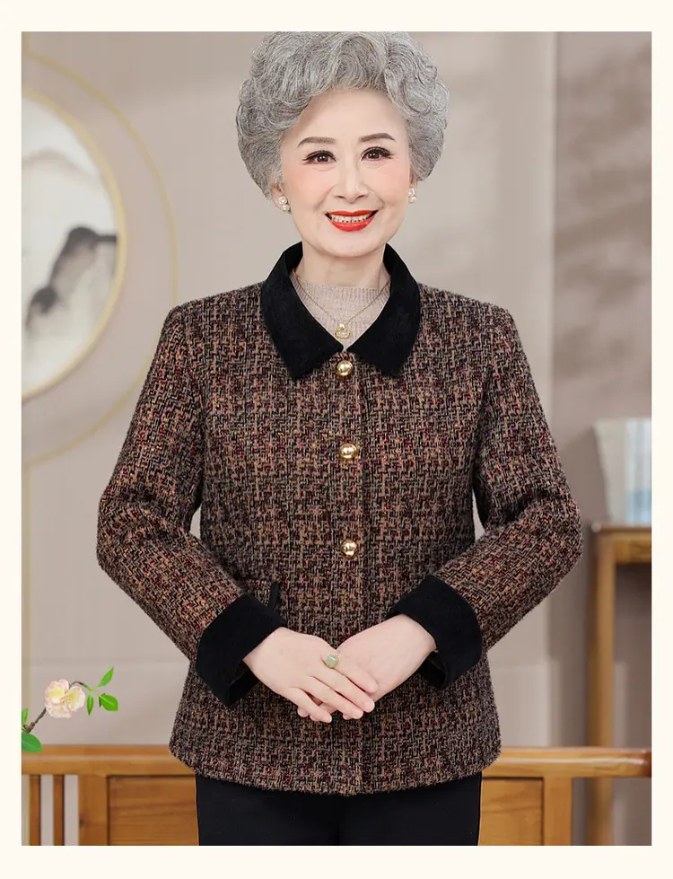 Ropa de abrigo moderna para abuela para primavera y otoño 2025 Nuevo estilo Ropa para señoras mayores Ropa para madre de mediana edad Tops de primavera y otoño