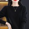 Otoño e invierno 2024 nuevo suéter de cuello redondo de pura lana manga larga color sólido jersey suelto básico mujer