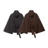 Estilo Europeo y Americano Transfronterizo Z Nueva Moda Elegante Ropa para Mujer Venta al por Mayor Cuello Alto Cinturón Chaqueta de Lana Top
