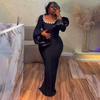 Compra Vestido Elegante de Noche con Mangas de Trompeta, Cuello Cuadrado, Tachonado, de Moda Transfronterizo Europeo y Americano, Estilo Socialité, Ajustado, de Vendaje para Mujer al por mayor en Joom.pro