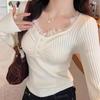 Camiseta de punto de encaje para mujer con ajuste ceñido, nuevo suéter corto de alta gama Otoño 2025, venta al por mayor