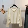 Camiseta Interior de Color Puro Estilo Coreano con Cuello en V para Mujer Primavera y Otoño 2025 Petite Casual Versátil Tops de Manga Larga para Mujer