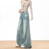 Jeans Azules Claros Pequeños con Diseño Personalizado 2025 Rasgados de Cintura Alta Estilo Retro Adelgazante Pantalones de Pierna Ligeramente Acampanada para Mujer