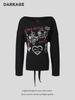 Camiseta de Manga Larga con Estampado de Corazón Estilo Retro Americano para Chicas Atrevidas Look Callejero Adelgazante Look Adelgazante con Tirantes Top de Principios de Otoño Nuevo Estilo de Otoño