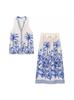 2025 Nuevo Estilo de Verano Blusa de Moda con Estampado de Planta y Mariposa + Falda de Bajo Amplio con Botonadura Sencilla