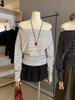 Wgwe7058 # Roupas Femininas Treze Fileiras de Guangzhou 2025 Outono Novo Estilo Ombro a Ombro Soltinho Manga Longa Camiseta Top