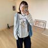 Otoño Nuevo Estilo Coreano Camiseta de Algodón Puro de Manga Larga para Mujer Estilo Lazy a la Moda Simple Suelta Estampada Trendy