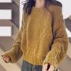 Otoño e Invierno Nuevo Tejido de Punto de Color Puro Tejido Jacquard Trenzado Estéreo Suéter para Mujer Estilo Retro Cuello Redondo Top Holgado