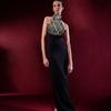 2025 Nuevo Vestido Sexy de Estilo Socialité de Moda Europea y Americana Transfronterizo con Diamantes Calientes sin Mangas Falda Larga Ajustada a las Caderas