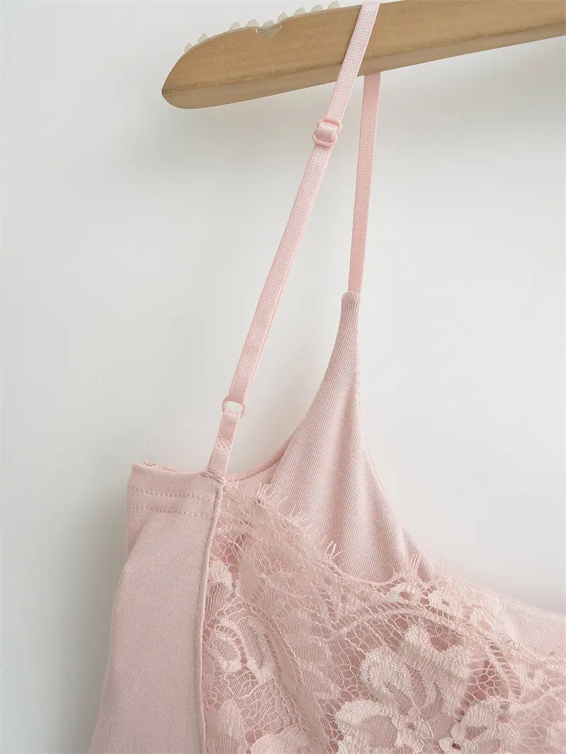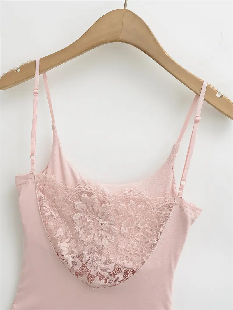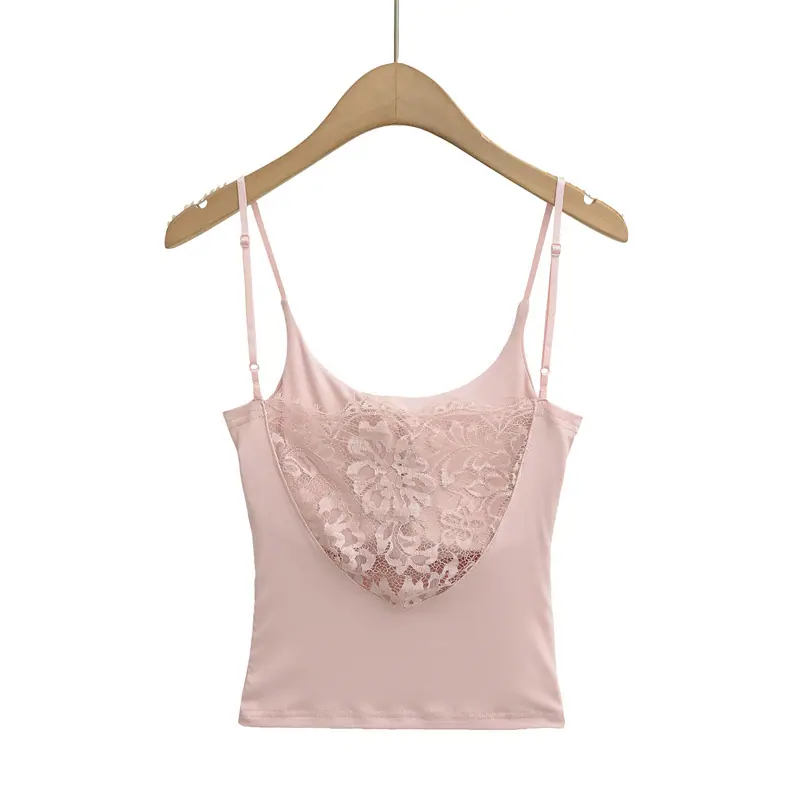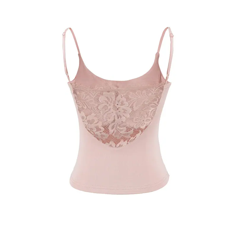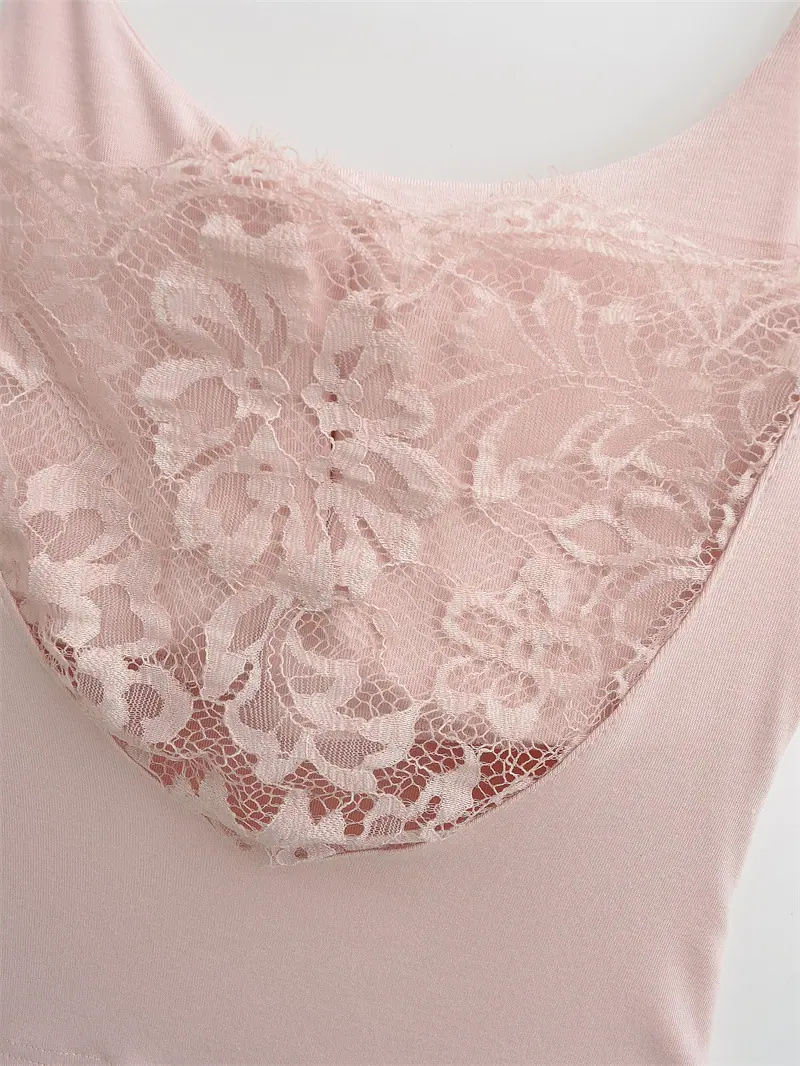 Estilo Lujuria Pura Sexy Camisola de Encaje con Empalme sin Espalda Verano Nuevo Versátil Slim Corto Top de Chica Caliente para Mujer