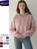 Sudadera corta con capucha y forro polar, estilo europeo y americano, corte holgado, nuevo estilo de primavera y otoño para mujer, top sencillo de manga larga transfronterizo