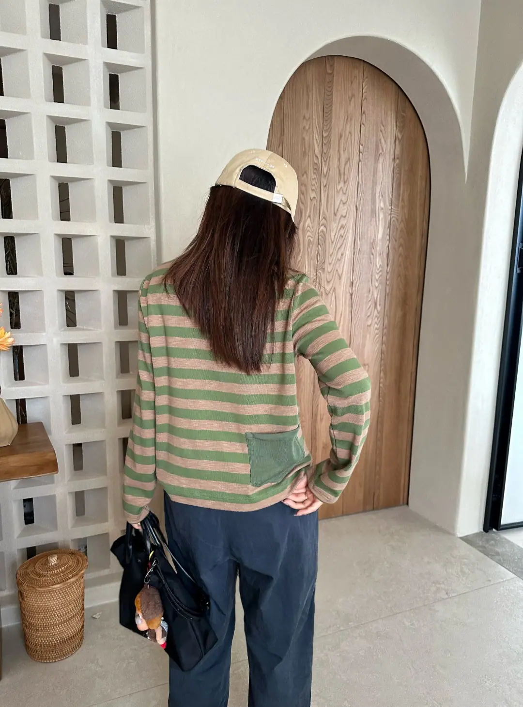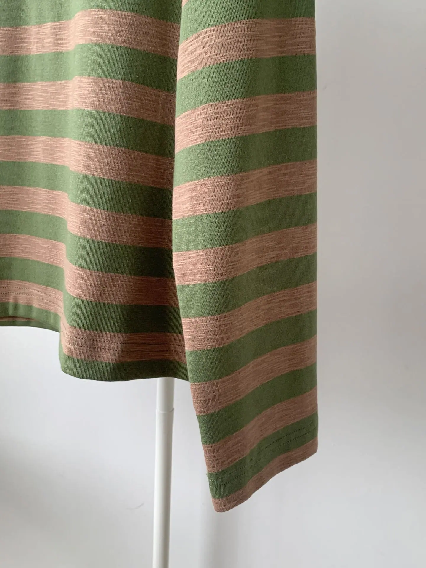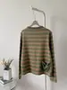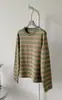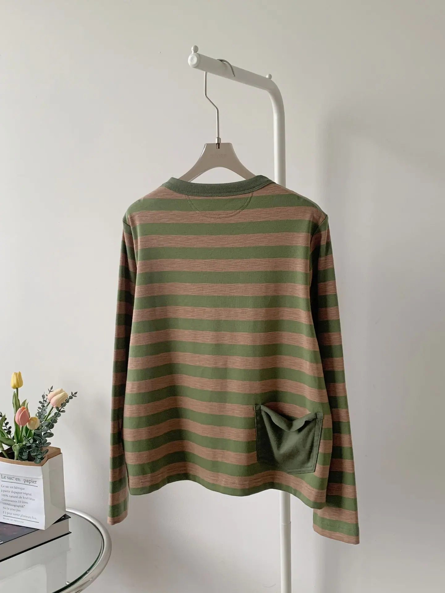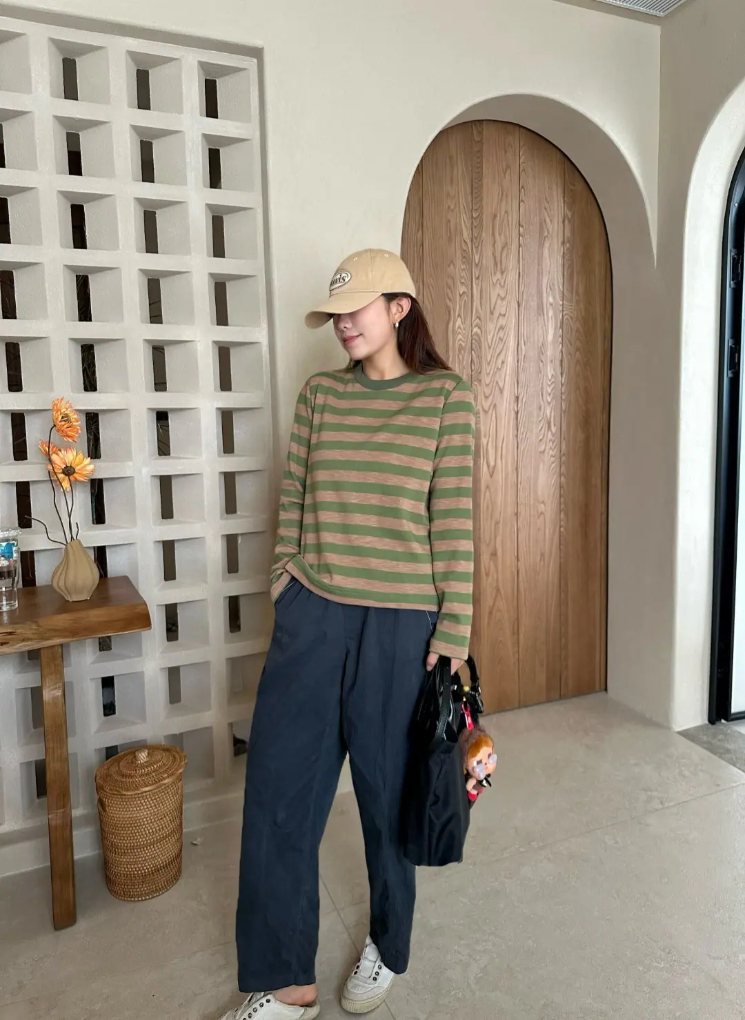 Camiseta Básica Rayada de Principios de Otoño para Mujer Ropa Interior Moda Cuello Redondo Holgada Versátil Camiseta de Manga Larga Casual Top de Algodón Puro Fino