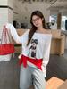 Compra Top Base Blanco Estilo Coreano con Estampado de Cachorro, de un Solo Hombro y Manga Larga, Nuevo Otoño Temprano 2026, Holgado, Adelgazante, para Mujer al por mayor en Joom.pro