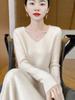 Nueva Camiseta de Punto de Lana de Cuello en V con Rombo de Color Sólido para Mujer, Estilo Coreano, Suéter de Manga Larga Holgado