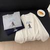 Sudadera Redonda de Estilo Coreano Otoño 2025, Nuevo Estilo, Sencilla, Bordada con Oso, para Mujer, Holgada, Casual, Versátil, Rejuvenecedora, de Manga Larga