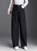Jeans Rectos Tipo Cimitarra Nuevos Otoño 2025 para Mujer Azul Oscuro Cintura Alta Casual Cuadros Cubre Piel Jeans Pierna Ancha