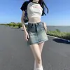 Falda de Mezclilla Elástica Retro de Cintura Alta para Chica Caliente 2024 para Mujer Nueva Falda Bodycon Adelgazante Anti-Exposición con Línea A